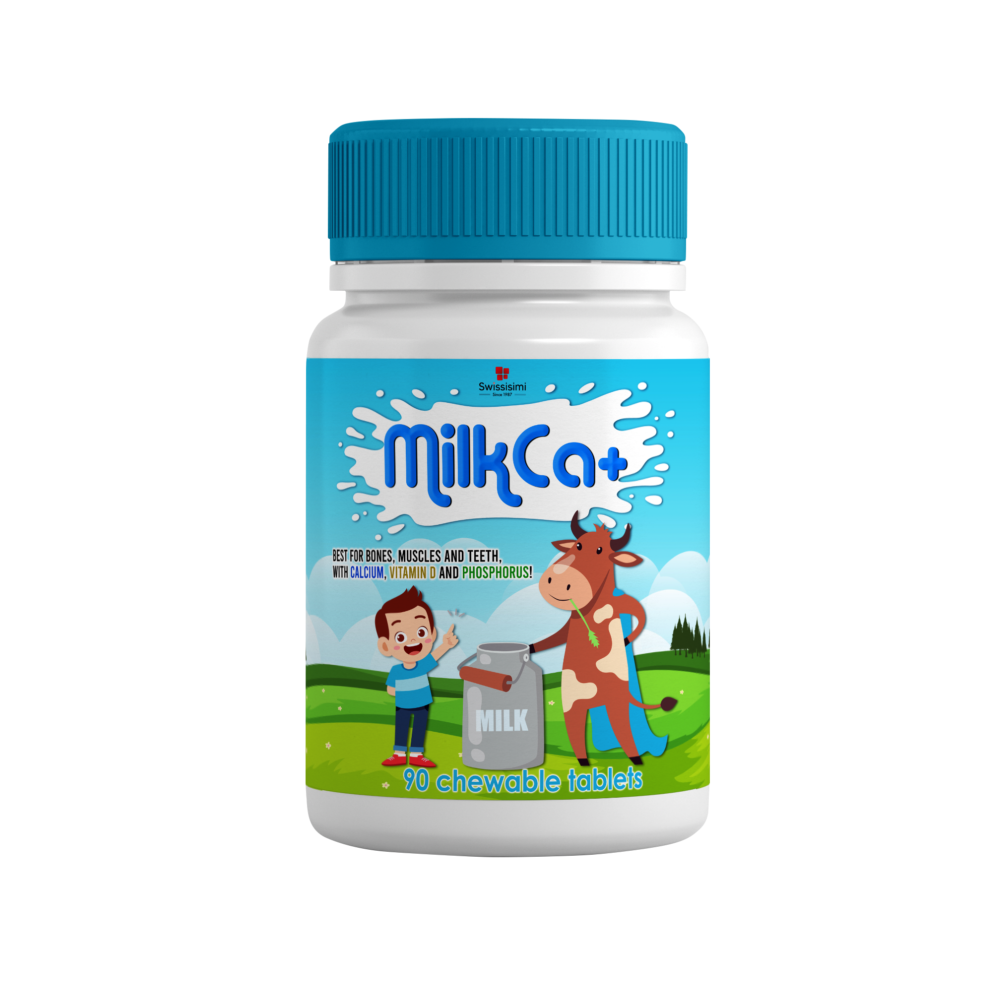 Milk Ca+ is a chewable tablet containing calcium, vitamin D and phosphorus, which are beneficial for children’s bones, muscles, and teeth.Â